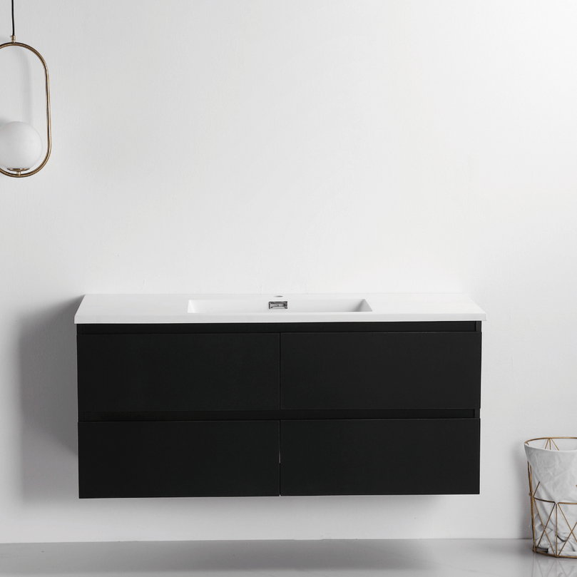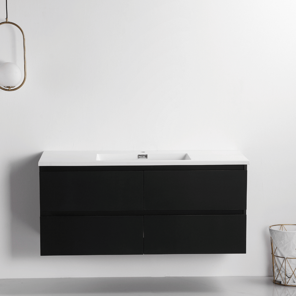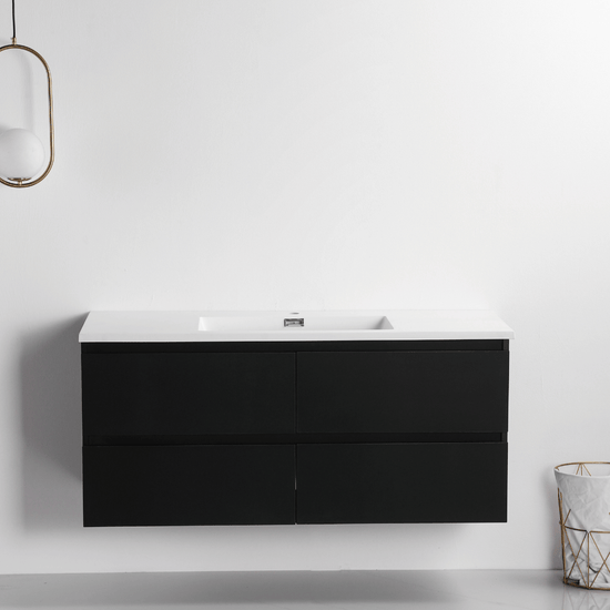 This 60-inch wide vanity cabinet maximizes storage in small bathrooms. This freestanding full-overlay vanity features a Scandinavian transitional design. Additionally, its two-door cabinet offers extra storage and easy access to your plumbing. Built from quality wood, with a laminated wood door front, this freestanding vanity has a warm medium-tone wood grain appearance complemented by a matte-finished micro crystal vanity top. The one-piece vanity top includes an integrated rectangular sink and is pre-drilled to accommodate a faucet. Designed for quick installation around your existing plumbing.