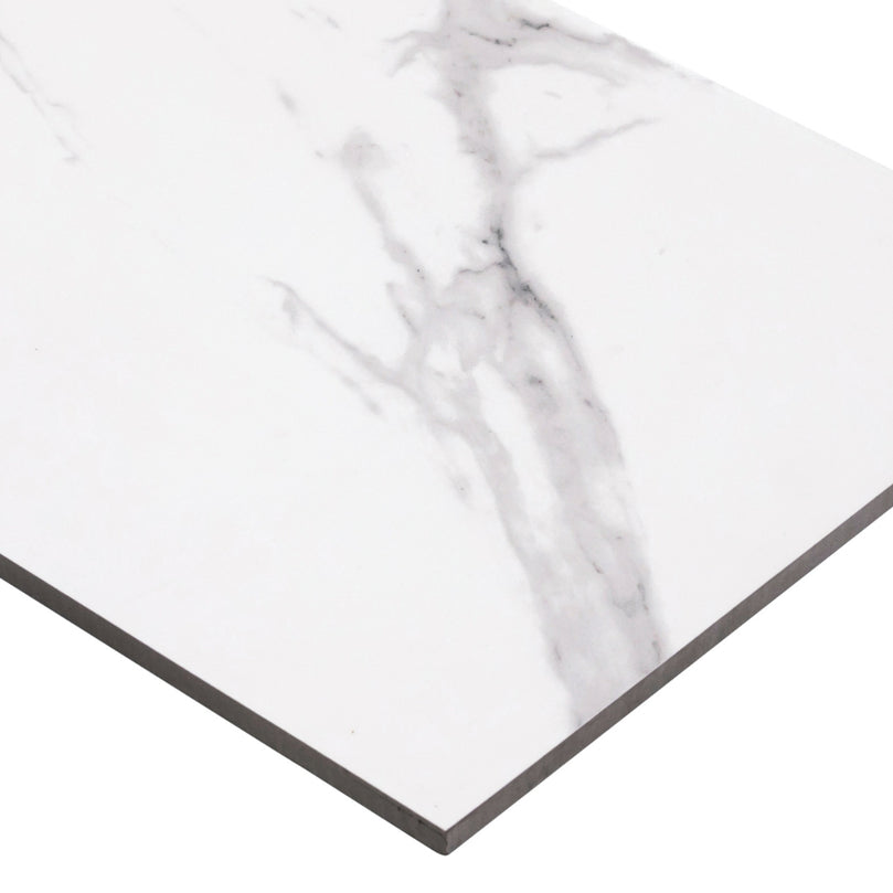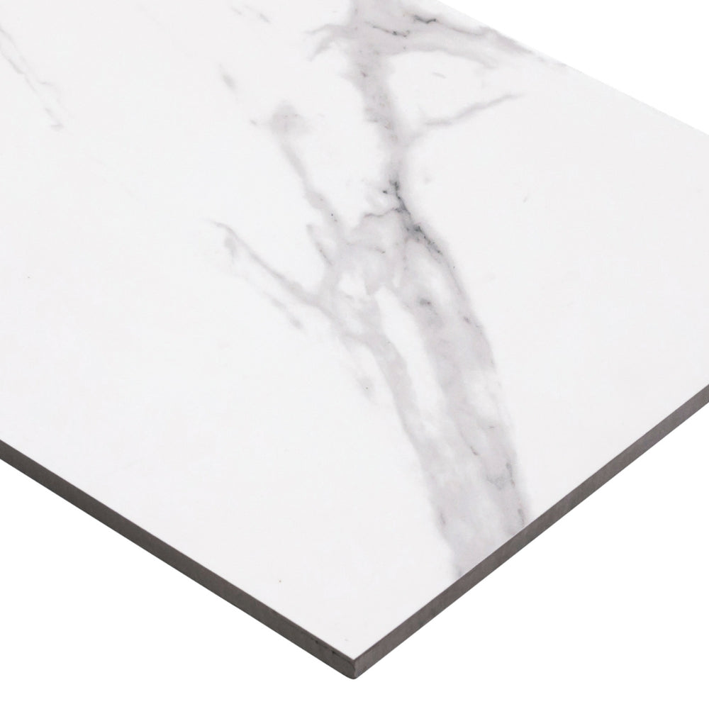 Add a touch of timeless elegance to your decor with the Calacatta Cielo polished white ceramic. Inspired by the prestigious Italian Calacatta marble, this ceramic features a bright white background crossed by delicate, natural gray veins, creating a sophisticated and refined effect.