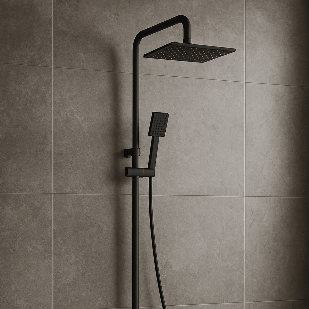 Square Chrome Shower Column - Matte Black