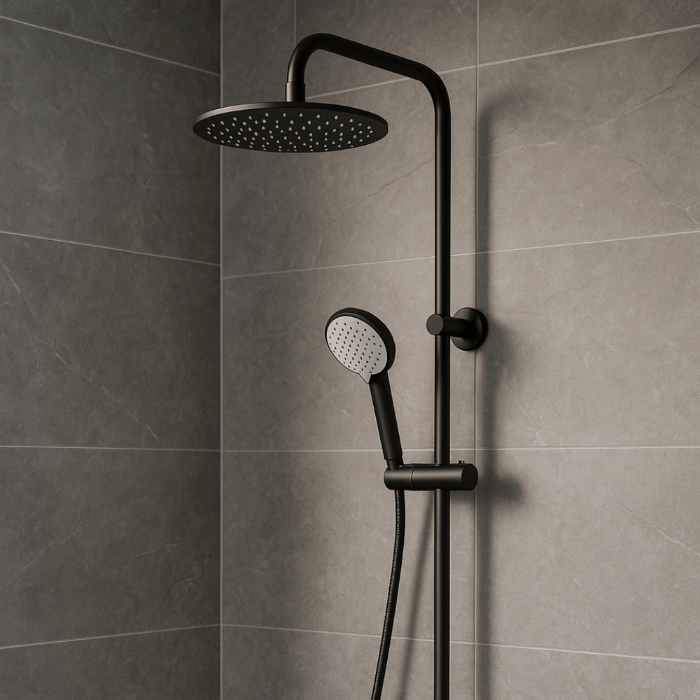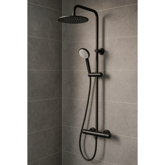 Add a touch of elegance and functionality to your bathroom with this round shower column in contemporary style. Made of 304 stainless steel, it features a striking matte black color and a matte finish that fits perfectly with modern decor.