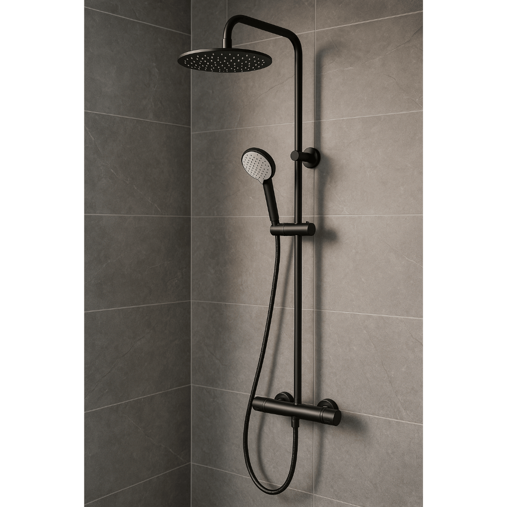 Equipped with a 35 mm ceramic cartridge for smooth temperature and flow control, it is also designed with a 200 mm showerhead for an enveloping shower experience. Its quick-mount system facilitates installation, while the hand shower with 1500 mm hose ensures comfortable and convenient use.