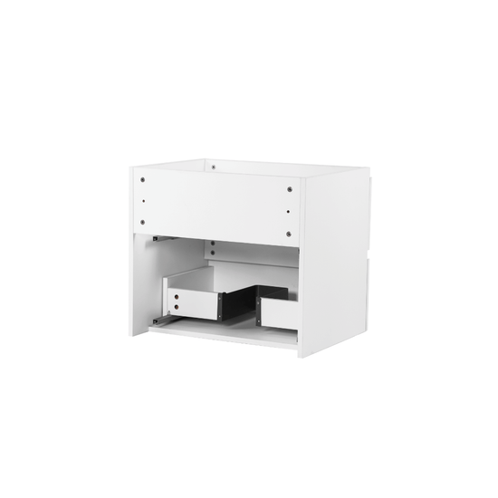 This 24-inch wide vanity cabinet maximizes storage in small bathrooms. This freestanding full-overlay vanity features a Scandinavian transitional design. Additionally, its two-door cabinet offers extra storage and easy access to your plumbing. Built from quality wood, with a laminated wood door front, this freestanding vanity has a warm medium-tone wood grain appearance complemented by a matte-finished micro crystal vanity top. The one-piece vanity top includes an integrated rectangular sink and is pre-drilled to accommodate a faucet. Designed for quick installation around your existing plumbing.