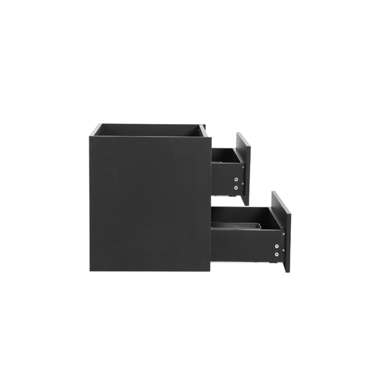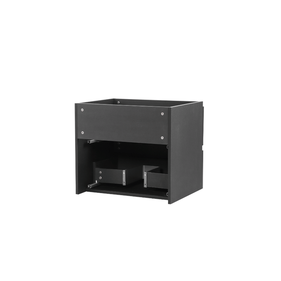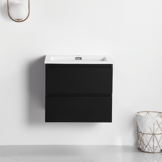 This 24-inch wide vanity cabinet maximizes storage in small bathrooms. This freestanding full-overlay vanity features a Scandinavian transitional design. Additionally, its two-door cabinet offers extra storage and easy access to your plumbing. Constructed from quality wood, with a laminated wood door front, this freestanding vanity has a warm medium-tone wood grain appearance complemented by a matte-finished micro crystal vanity top. The one-piece vanity top includes an integrated rectangular sink and is pre-drilled to accommodate a faucet. Designed for quick installation around your existing plumbing.