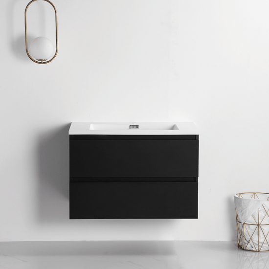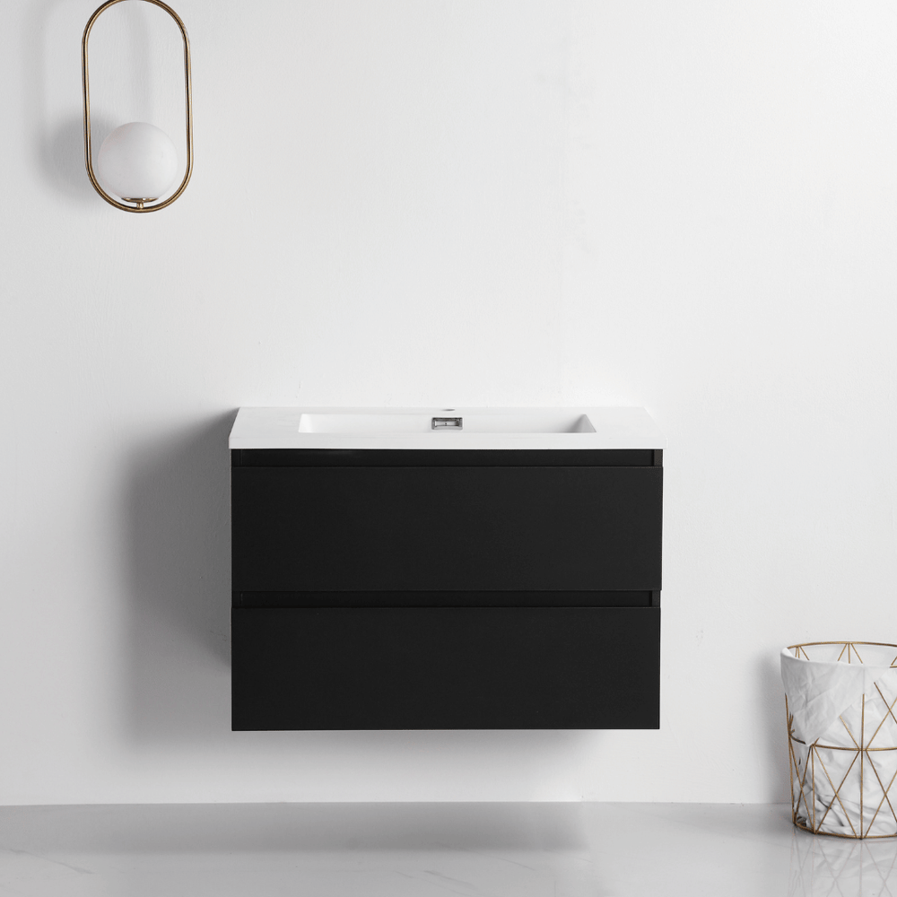 This 32-inch wide vanity cabinet maximizes storage in small bathrooms. This freestanding full-overlay vanity features a transitional Scandinavian-style design. Additionally, its two-door cabinet offers extra storage and easy access to your plumbing. Built from quality wood, with a laminated wood door front, this freestanding vanity has a warm medium-tone wood grain appearance complemented by a matte-finished micro crystal vanity top. The one-piece vanity top includes an integrated rectangular sink and is pre-drilled to accommodate a faucet. Designed for quick installation around your existing plumbing.