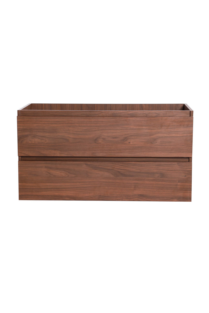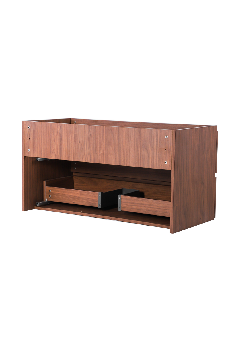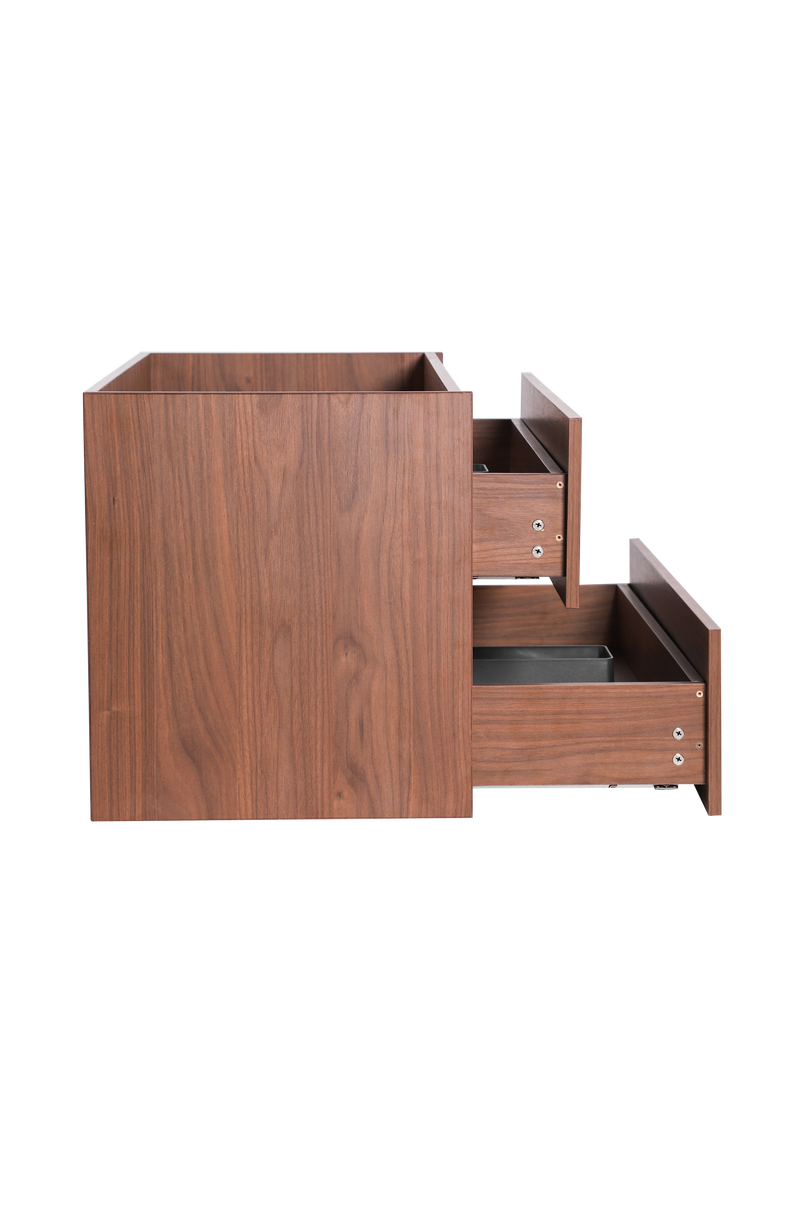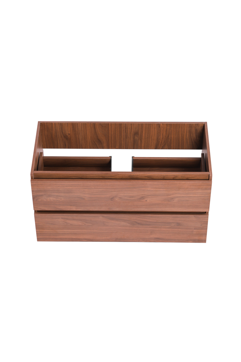 This 40-inch wide vanity cabinet maximizes storage in small bathrooms. This freestanding full-overlay vanity features a Scandinavian transitional design. Additionally, its two-door cabinet offers extra storage and easy access to your plumbing. Constructed from quality wood, with a laminated wood door front, this freestanding vanity has a warm medium-tone wood grain appearance complemented by a matte-finished micro crystal vanity top. The one-piece vanity top includes an integrated rectangular sink and is pre-drilled to accommodate a faucet. Designed for quick installation around your existing plumbing.