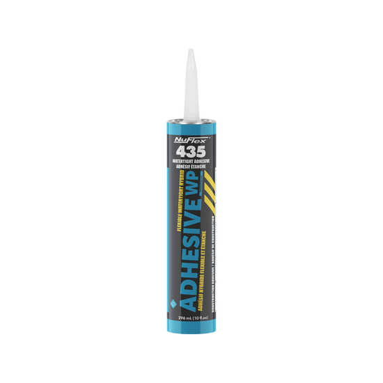 NuFlex® 435 HybridWP Adhesive est un adhésif hybride flexible et étanche. Il peut être utilisé autant à l’intérieur qu’à l’extérieur puisqu’il est non corrosif, faible en COV et résistant aux intempéries ainsi qu’aux rayons UV.