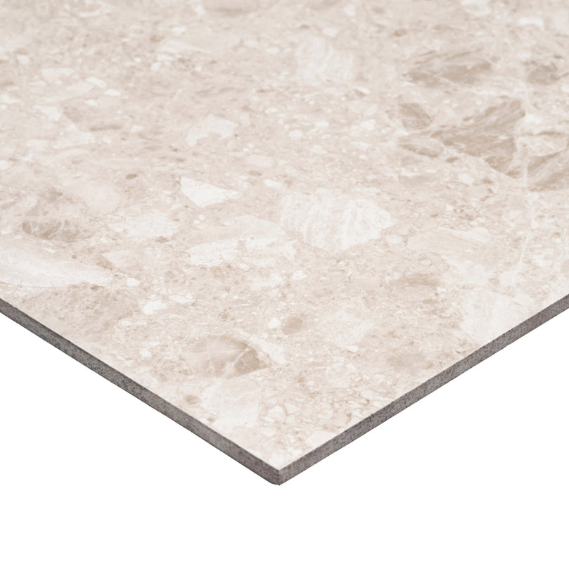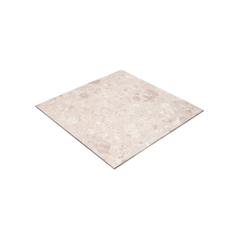 Offerte en format 24 x 24 pouces, la Dolce di Grès Sand permet de créer des surfaces harmonieuses et modernes, autant pour les planchers que pour les murs. Son motif terrazzo revisité combine style et polyvalence, s’intégrant parfaitement dans les cuisines, salles de bain ou aires de vie.