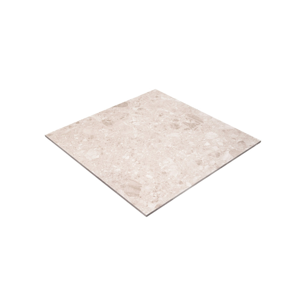 Apportez chaleur et caractère à votre décor avec la céramique Sand Dolce di Grès effet terrazzo. Inspirée du terrazzo italien traditionnel, cette céramique présente un fond sable doux parsemé d’éclats minéraux aux nuances naturelles, créant un motif riche et élégant qui ajoute de la texture et du dynamisme à l’espace.