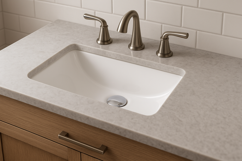 Apportez une touche de modernité et de finesse à votre salle de bain avec ce lavabo rectangulaire à encastrer sous plan, conçu pour s’intégrer parfaitement sous un comptoir en pierre ou en stratifié.