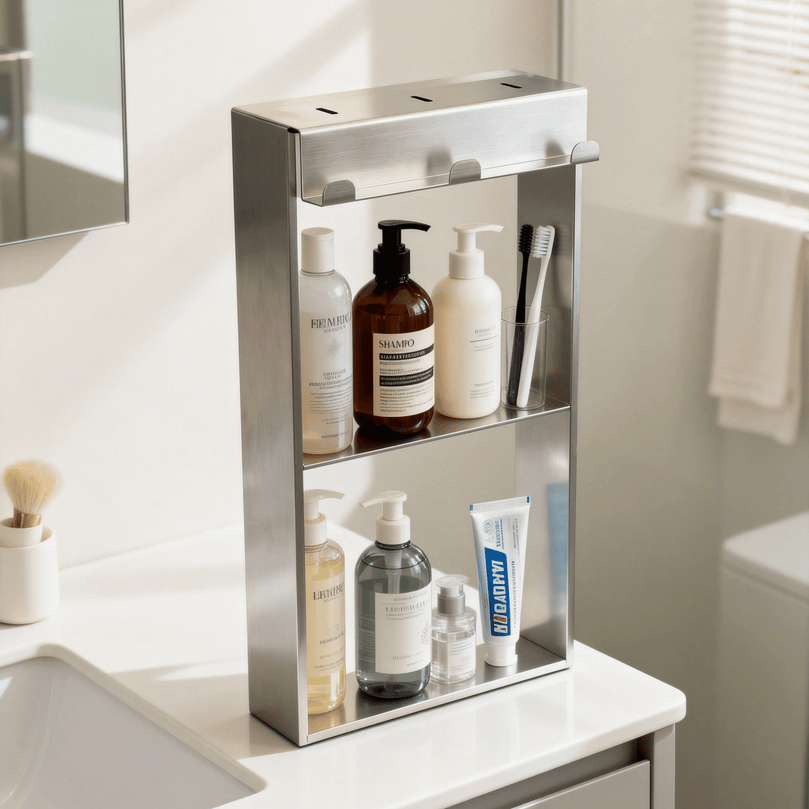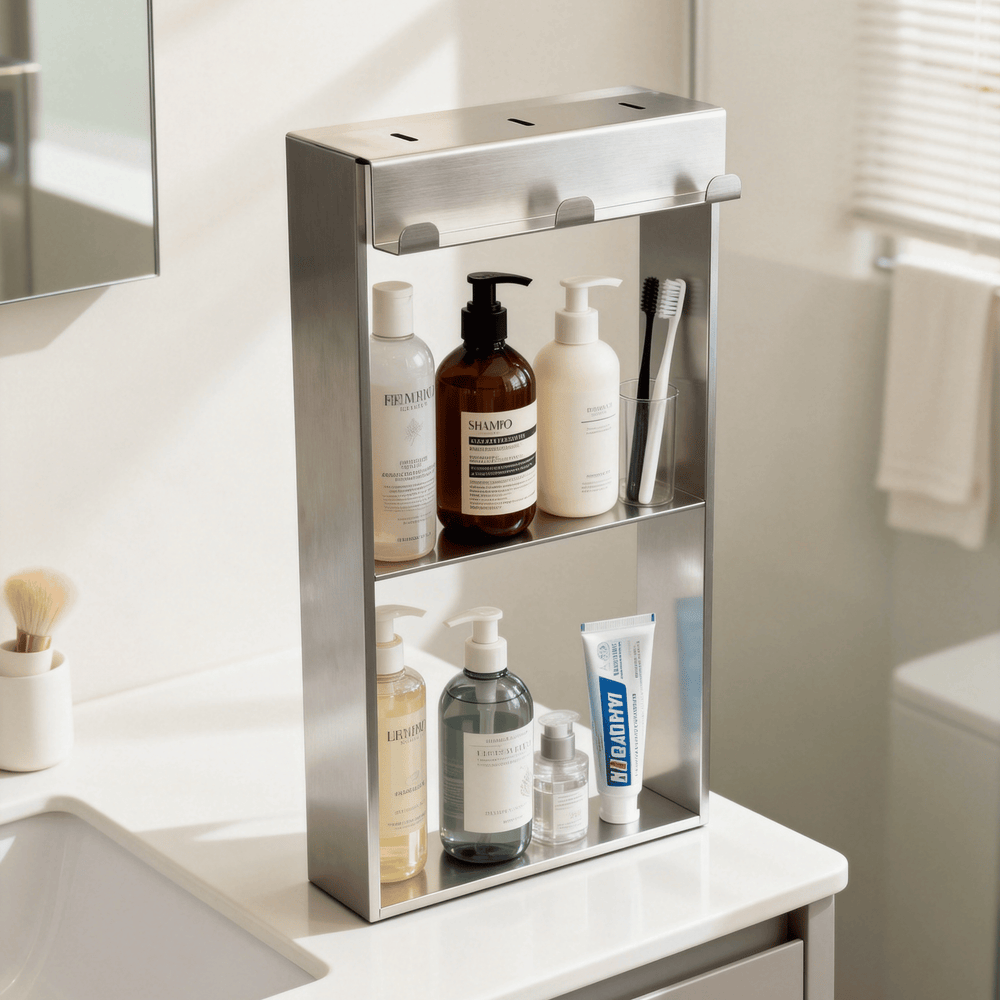 Optimisez votre espace de douche sans percer ni compromettre votre céramique grâce à notre niche de douche double amovible et ajustable. Conçue pour s’installer directement sur la vitre de douche, elle offre une solution de rangement pratique, élégante et entièrement réversible.