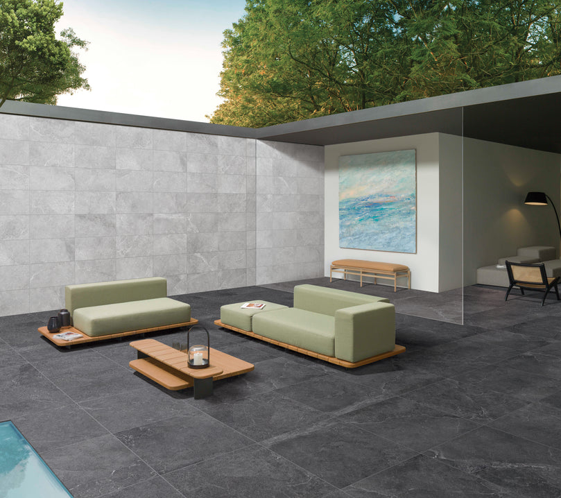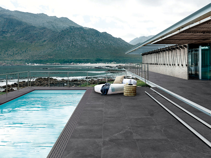 Ajoutez une touche de modernité et de caractère à vos espaces extérieurs avec la tuile Enzo Coal. D’un noir charbon texturé aux subtils veinages minéraux, cette tuile carrée de grand format (24 x 24 po) allie robustesse, esthétisme et fonctionnalité. Son fini mat légèrement texturé évoque la pierre naturelle tout en étant conçu pour résister aux éléments.